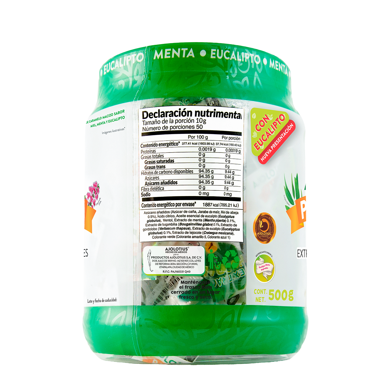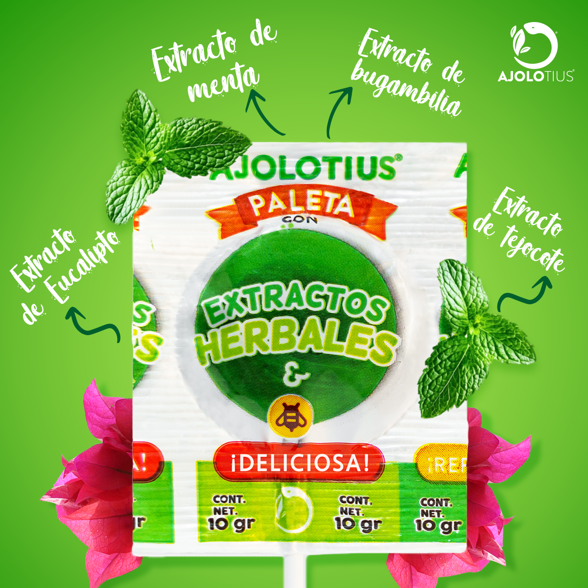 | Llevalas contigo a todas partes y disfruta de una experiencia deliciosa con nuestras paletas de caramelo macizo con menta y eucalipto. Elaborados mediante una selección especial de extractos de la herbolaria mexicana como la bugambilia, eucalipto, menta, gordolobo, palo mulato, tejocote y cuatecomate. Pensadas para los que quieren una opción deliciosa y natural. |